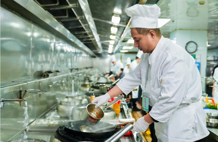 本次大赛不仅是职工职业技能的比拼平台,更是推动中医药膳标准化、普及化、产业化的重要举措。每支代表队由一名药膳指导师和四名药膳制作师组成,选手们紧扣主题,将长白山人参等道地药材与松花江鱼、本地土鸡等家常食材精妙融合,在60分钟内完成四道药膳的匠心烹制。在药膳讲解和理论答辩环节,选手更以专业视角阐释辨证施膳思路,赋予每一道菜品药用价值与饮食美感,体现了中医药膳“寓医于食”的科学内涵。